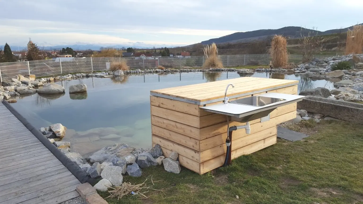 Besondere Merkmale: idyllischer Schwimmteich, großzügiger Eigengarten, Ewe-Küche, 2 überdachte Stellplätze, hochwertige Ausstattung, lichtdurchflutete Zimmer;