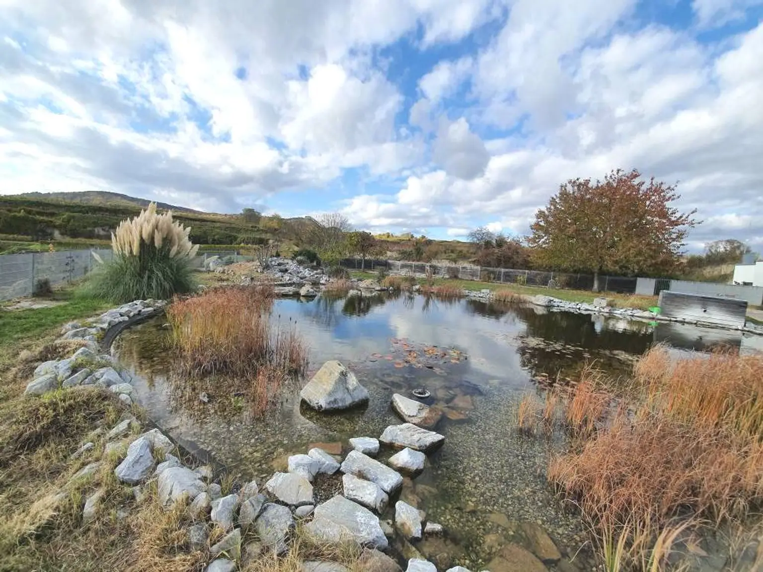 Wohnküche mit vollausgestatteter Küche & Speis, 2 Zimmer, 1 Gästezimmer mit Bad & WC, Schrankraum, Bad mit Wanne/Dusche und 2 WC´s, 3 Terrassen, Garten mit Schwimmteich, 2 Kellerräume (Waschküche & Abstellraum).