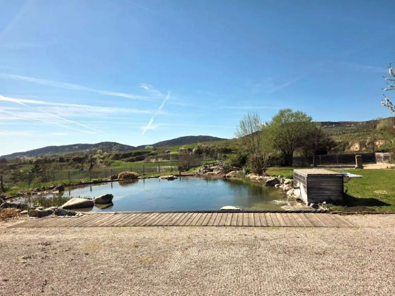 Besondere Merkmale: idyllischer Schwimmteich, großzügiger Eigengarten, Ewe-Küche, 2 überdachte Stellplätze, hochwertige Ausstattung, lichtdurchflutete Zimmer;