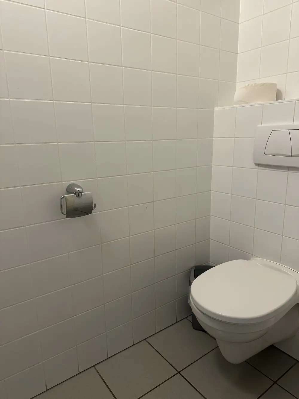 > Damen- und Herren-Sanitärgruppe mit mehreren Toiletten und Waschräumen