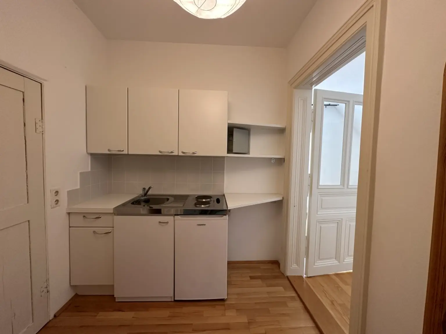 Vorzimmer mit Kochnische, Wohn- Schlafzimmer, und Duschbad mit WC;