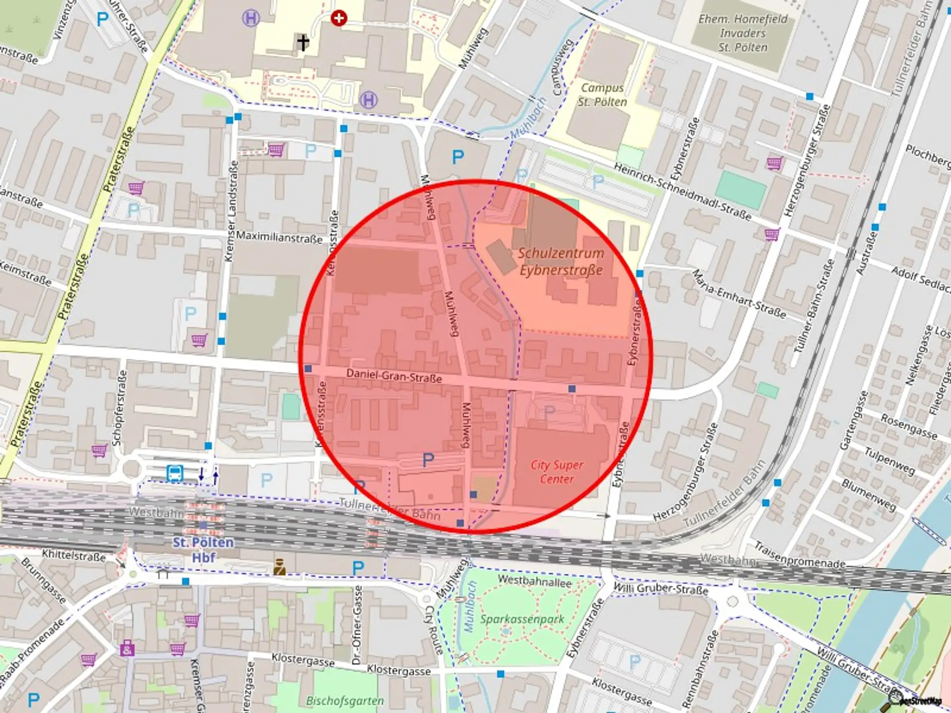 Das Wohnhaus befindet sich im Zentrum von St. Pölten. Besonders erwähnenswert ist die ausgezeichnete Verkehrsanbindung. Sowohl in öffentlicher als auch privater Hinsicht ist die Wohnung sehr gut gelegen. Diese gute Lage spiegelt sich auch auf den Bereich Infrastruktur und Einkaufsmöglichkeiten wider. Keine 4 Minuten Gehzeit entfernt befindet sich der St. Pöltner Hauptbahnhof und auch ein kleines Einkaufszentrum befindet sich nur wenige Meter entfernt.