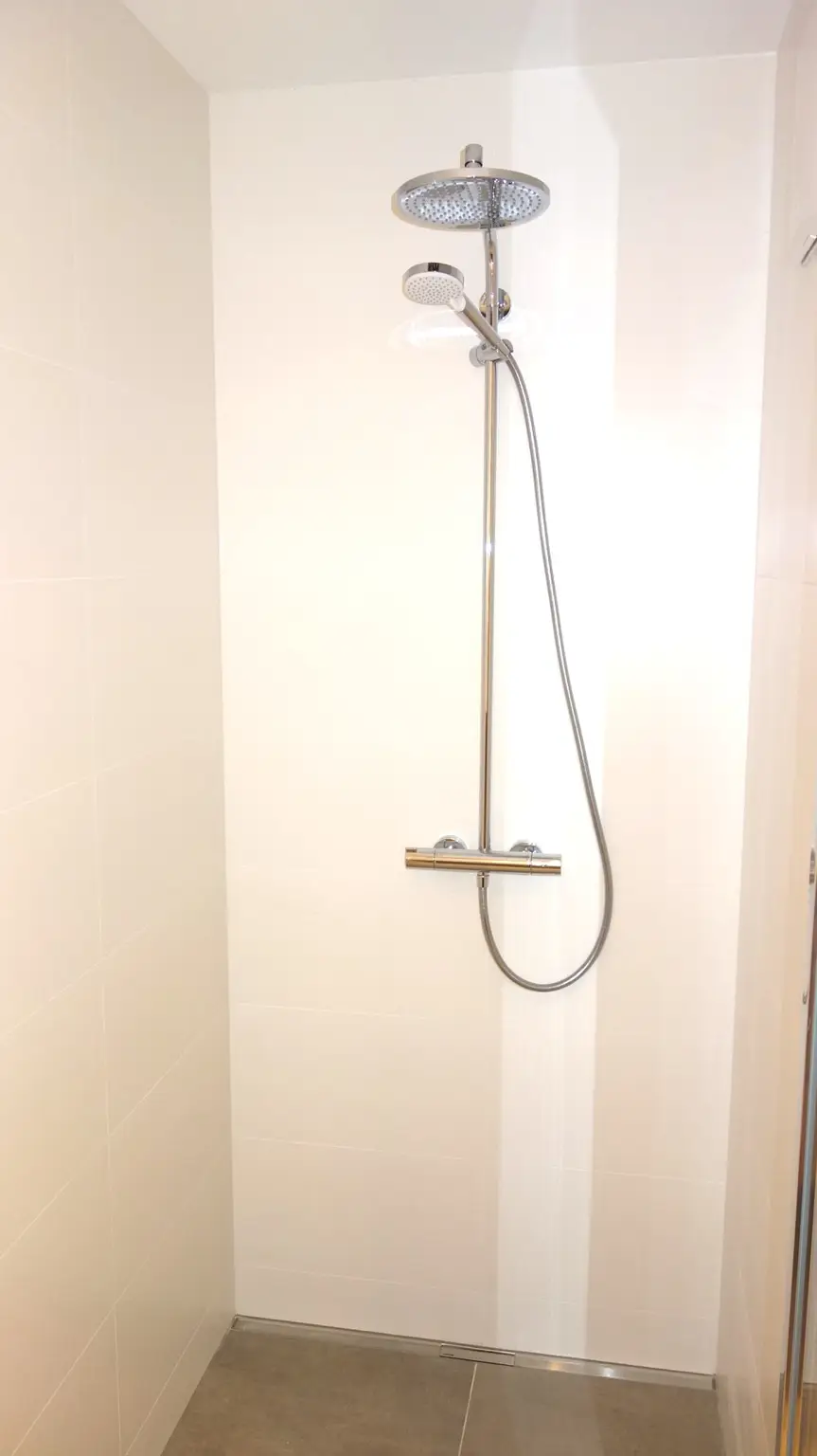 – Großformatfliesen in Badezimmer/WC mit moderner Sanitärausstattung