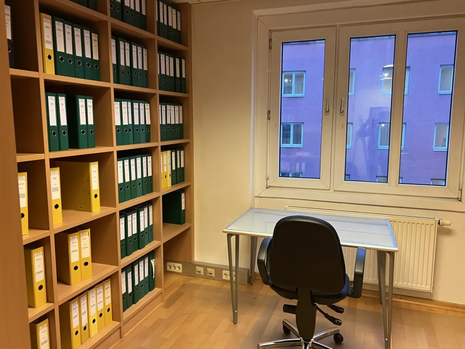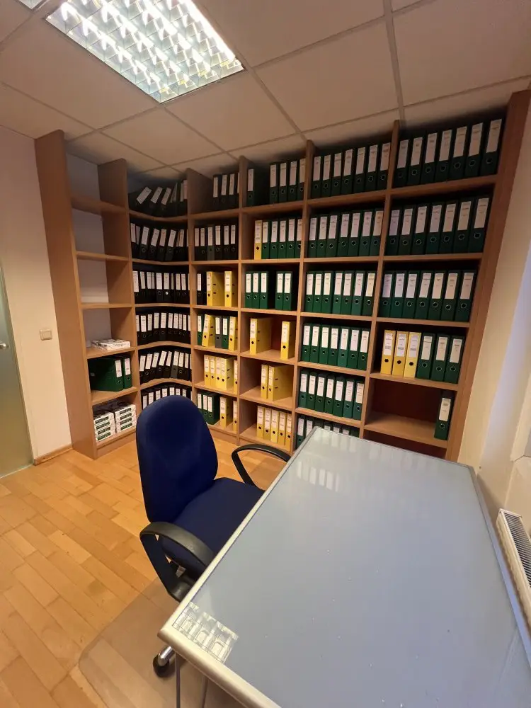 Das im 4. Obergeschoß (mit Lift) befindliche Büro besitzt eine Gesamtnutzfläche von ca. 124 m² und gliedert sich in: Vorraum, 3 Büroräume, Serverraum, Teeküche und 2 WC´s.
