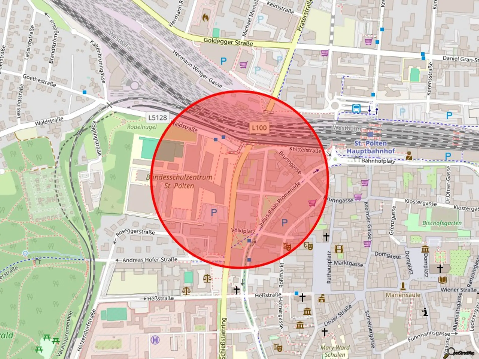 Das Wohnhaus befindet sich direkt im Zentrum von St.Pölten. Besonders erwähnenswert ist die ausgezeichnete Verkehrsanbindung. Sowohl in öffentlicher als auch privater Hinsicht ist die Wohnung sehr gut gelegen. Diese gute Lage spiegelt sich auch auf den Bereich Infrastruktur und Einkaufsmöglichkeiten wider. Keine 2 Minuten Gehzeit entfernt befindet sich der St.Pöltner Hauptbahnhof und auch diverse Einkaufsmöglichkeiten befinden sich nur wenige Meter entfernt.