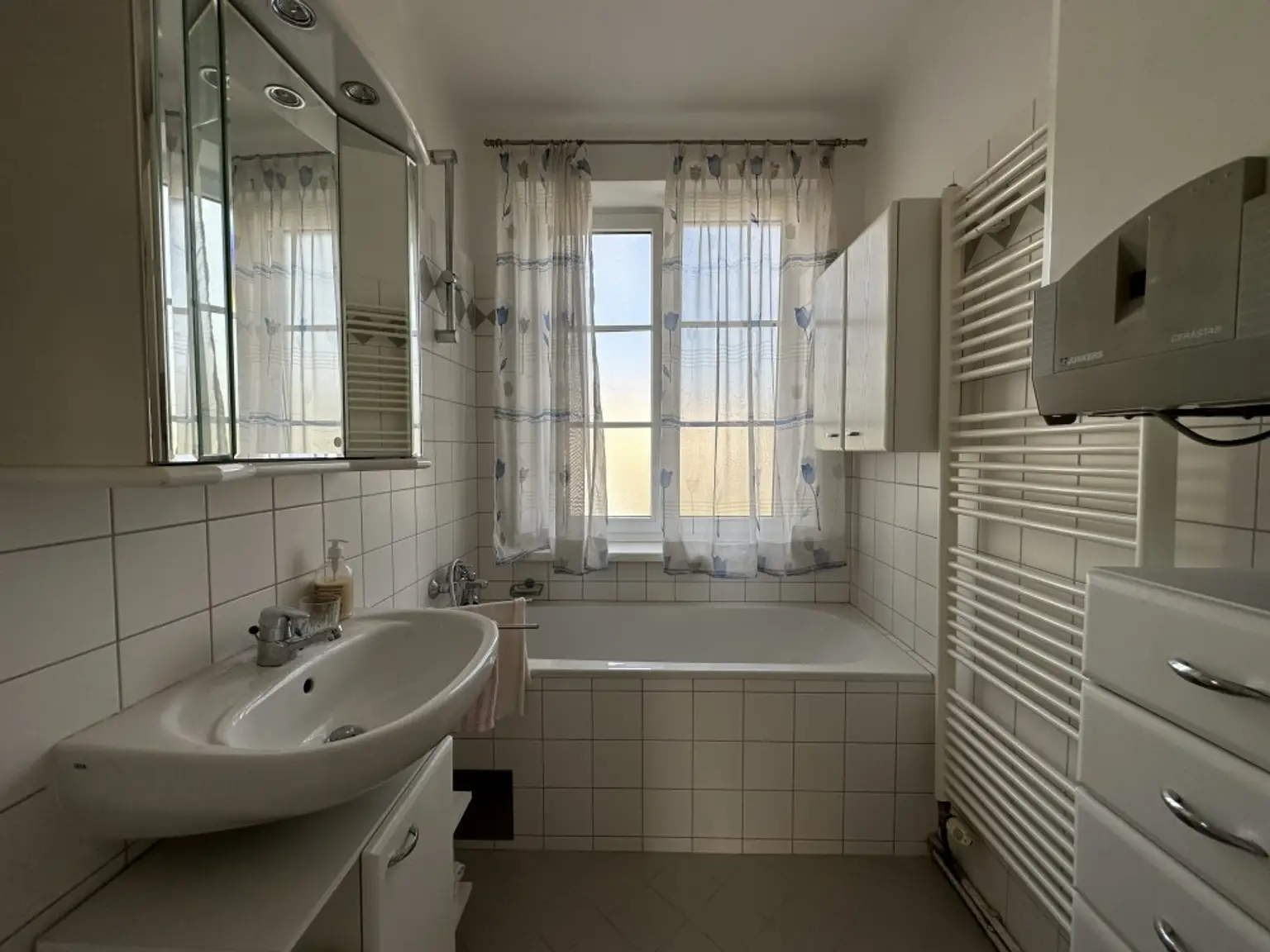 Das Badezimmer ist zeitlos mit einer Wanne ausgestattet und ist vollverfliest.
