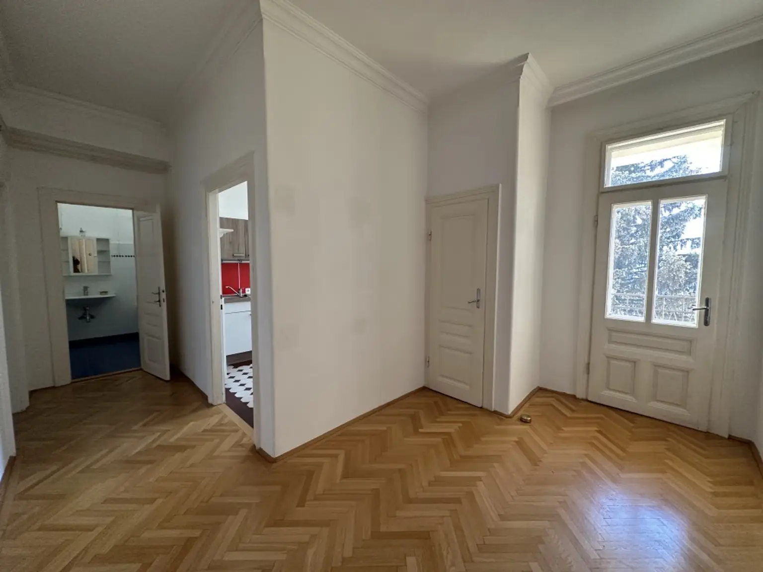 Die im 2. Obergeschoß (ohne Lift) gelegene Wohnung besitzt eine Wohnfläche von ca.99,57 m². In der gesamten Wohnung sind schöne alte Parkettböden verlegt. Das Bad und das WC sind verfliest.