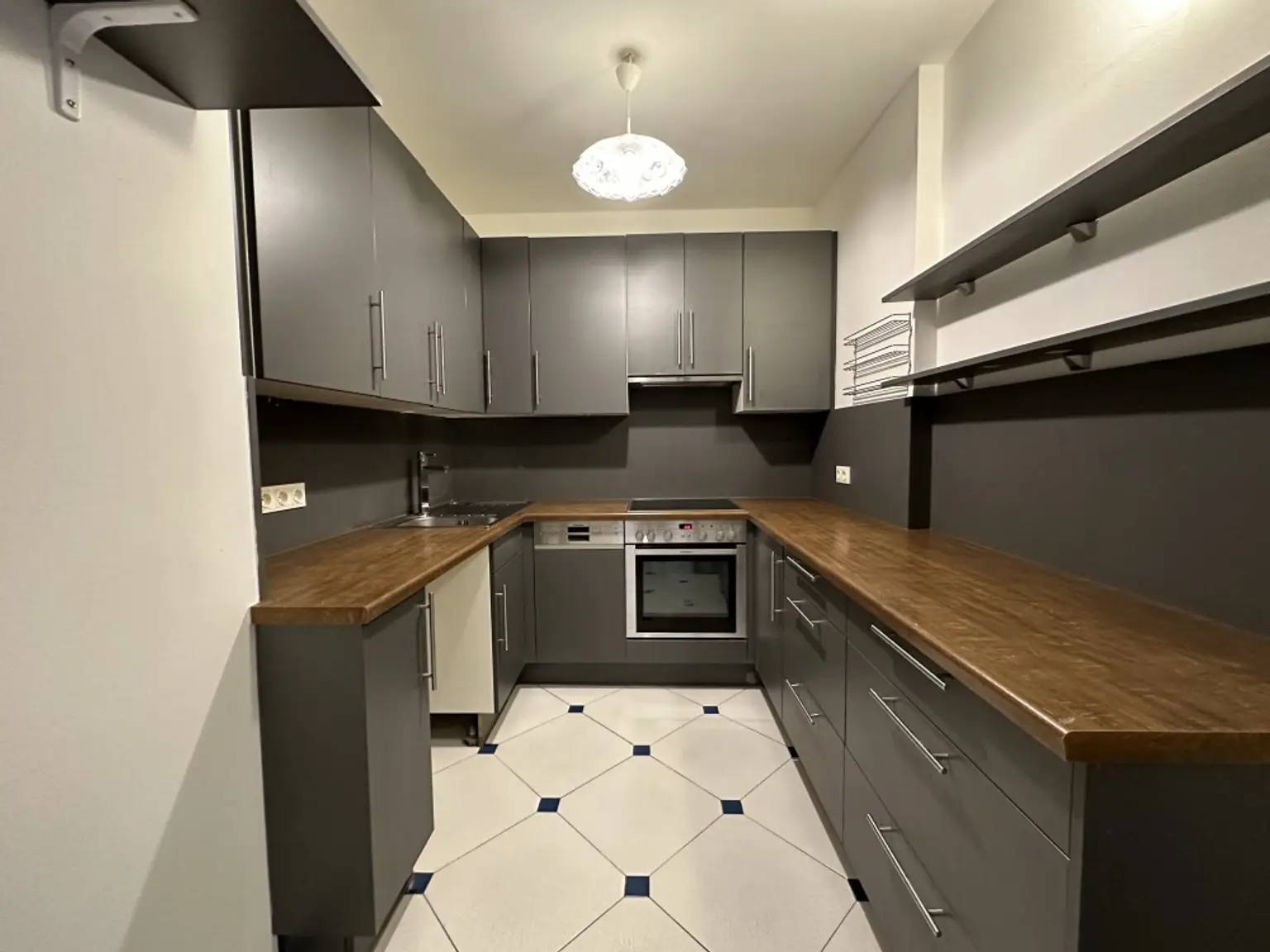 Das Vorzimmer ist bei dieser Wohnung nicht zentral angeordnet, sondern stellt lediglich die Verbindung zwischen Küche und dem Rest der Wohnung dar. Die mit einer Tischlerküche möblierte Küche bietet Ihnen alles, was Sie für den täglichen Gebrauch benötigen sowie eine große Arbeitsfläche.