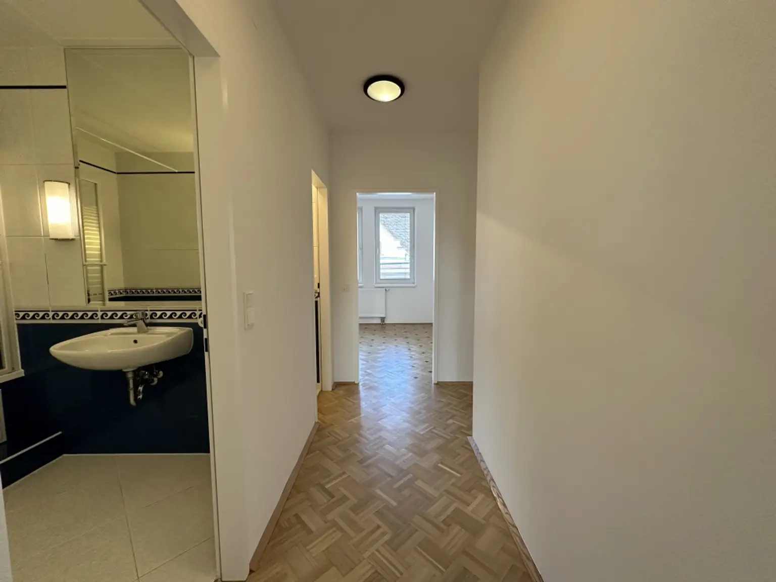 Das Badezimmer und das WC sind über den Gang zu erreichen. Beide sind verfliest und zeitgemäß ausgestattet. Das Badezimmer verfügt über eine Badewanne. Im WC ist in der Rückwand ein Einbauschrank montiert, in welchem auch der Elektroboiler versteckt ist. Beide Räume verfügen über eine Lüftungsventilation.