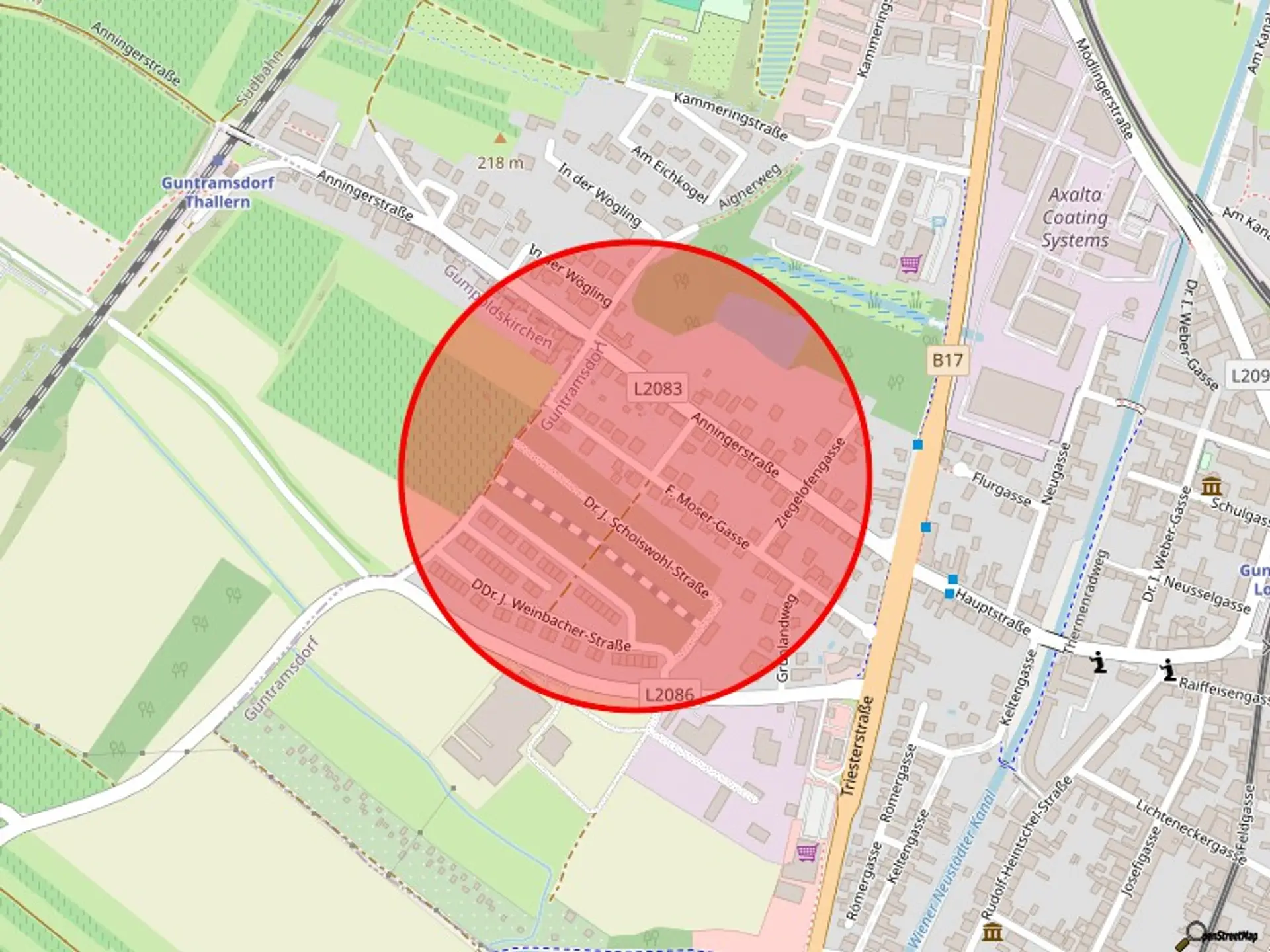 Die Liegenschaft befindet sich in der Ferdinand Moser Gasse in Guntramsdorf in ruhiger, sonniger Siedlungslage und bietet ein angenehmes, familienfreundliches Wohnumfeld. Die Umgebung ist von viel Grün geprägt und sorgt für eine hohe Lebensqualität in naturnaher Atmosphäre.
