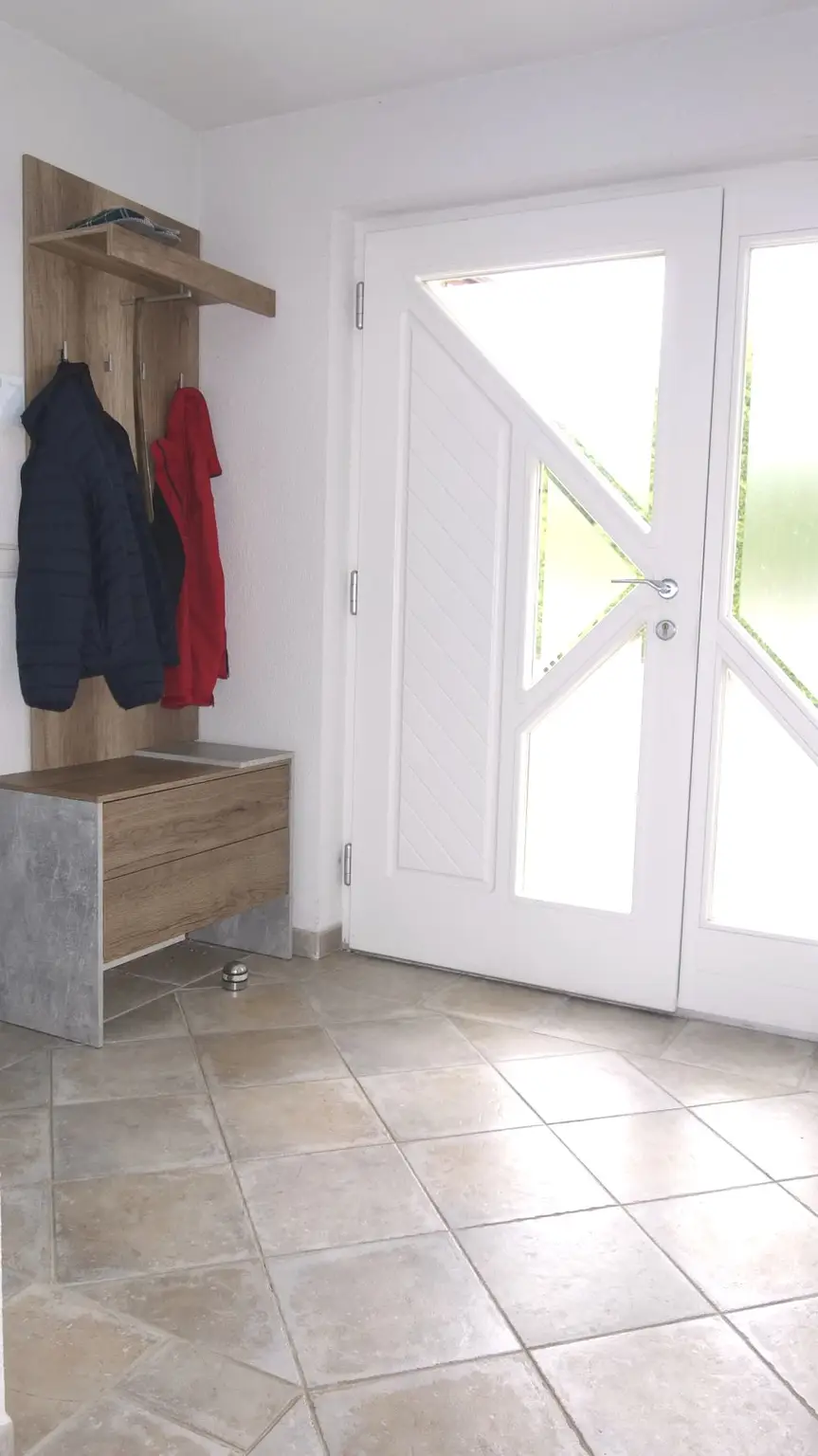 Eingangsbereich, Vorzimmer, Schlafzimmer, Wohnküche, Büro/Abstellraum, Badezimmer, WC und Kellerabgang sowie Zugang zur Garage;